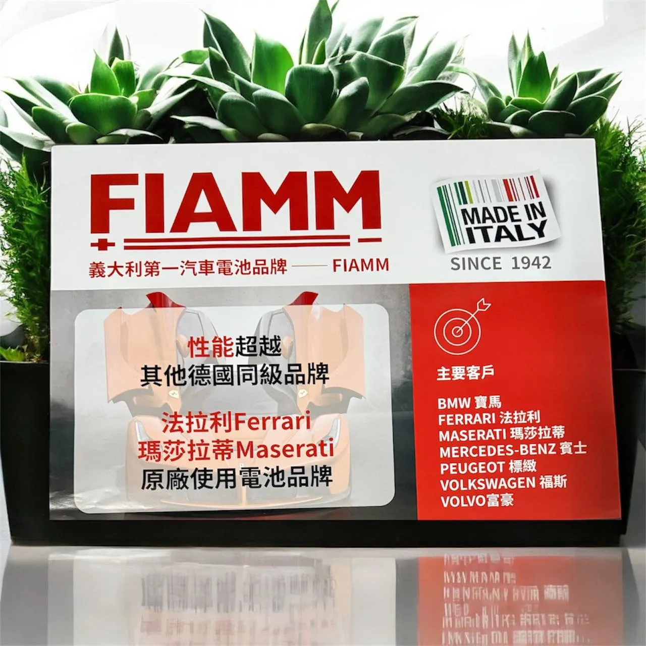 FIAMM創立於1942年 主要用於F1方程式拉力賽事車輛使用 也是現今義大利第一大電池製造廠。